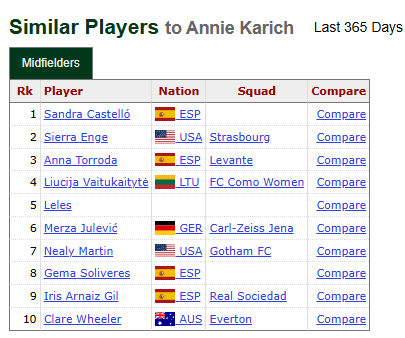 Stierli didn’t look too out of place making the jump from Switzerland to Freiburg. She had the second highest match rating on FotMob of any defender on the team, even with her red card against Eintracht Frankfurt as a blemish on an otherwise solid season. I don’t think she’s destined for a Best XI in Germany (or the NWSL), but she’s played internationally against some of the best teams in Europe and if Switzerland can rebound from a pretty terrible run of fixtures (their last win or draw was in October), I’d expect Stierli to receive some interest from at least a few defensive-minded teams.