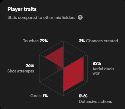 Helping Wolfsburg to a second place finish, she contributed 4 goals and 3 assists. She ranked in the 98th percentile for shot-creating actions, which will come in handy